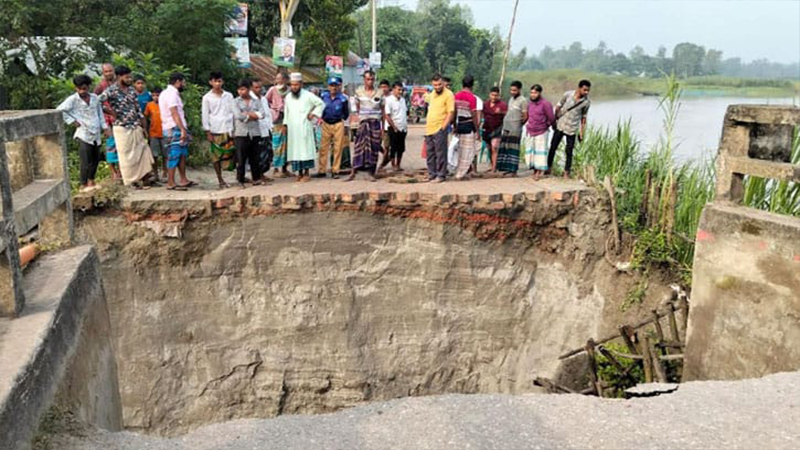অটোরিকশা চালক আব্দুল হাই ও খোরশেদ আলম বলেন, ভোরে যাত্রী নিয়ে এসে দেখলাম ভেঙে গেছে। পরে যাত্রী নামিয়ে দিয়ে ভাঙনের দৃশ্য দেখতেছি। দ্রুত বিকল্প ব্যবস্থা না নিলে আমরা গাড়ি চালাতে পারব না।
